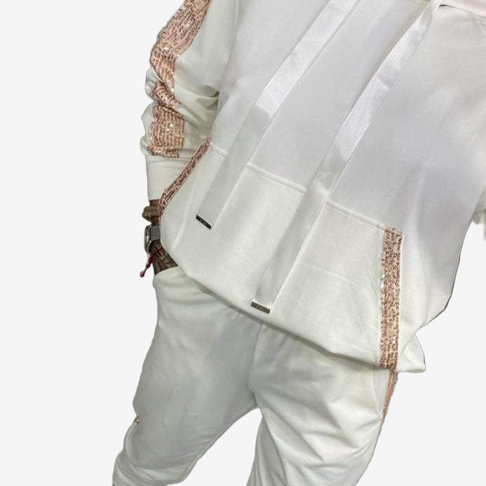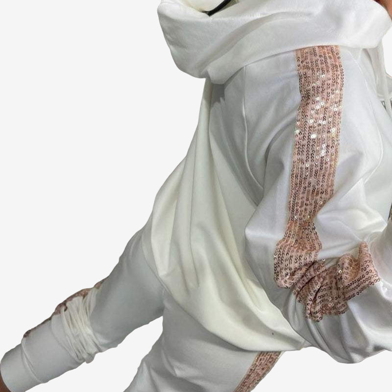 The Jacqueline™ 2-piece set is the perfect mix of style and comfort. Designed with a relaxed fit and modern details, this matching hoodie and jogger combo is ideal for casual days, travel, or lounging in style. Its versatile look makes it easy to wear indoors or outdoors while keeping you effortlessly fashionable.