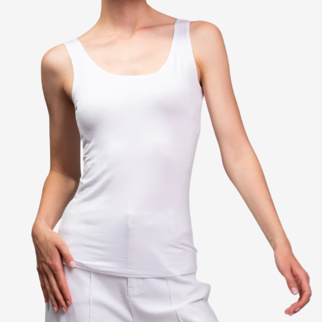 The Clémence™ tank top is your ultimate wardrobe essential. Featuring a flattering scoop neckline and bra-friendly straps, this sleek and stretchy silhouette hugs the body comfortably, allowing for all-day movement. Whether layered under a blazer or worn solo with jeans, it offers endless styling possibilities.