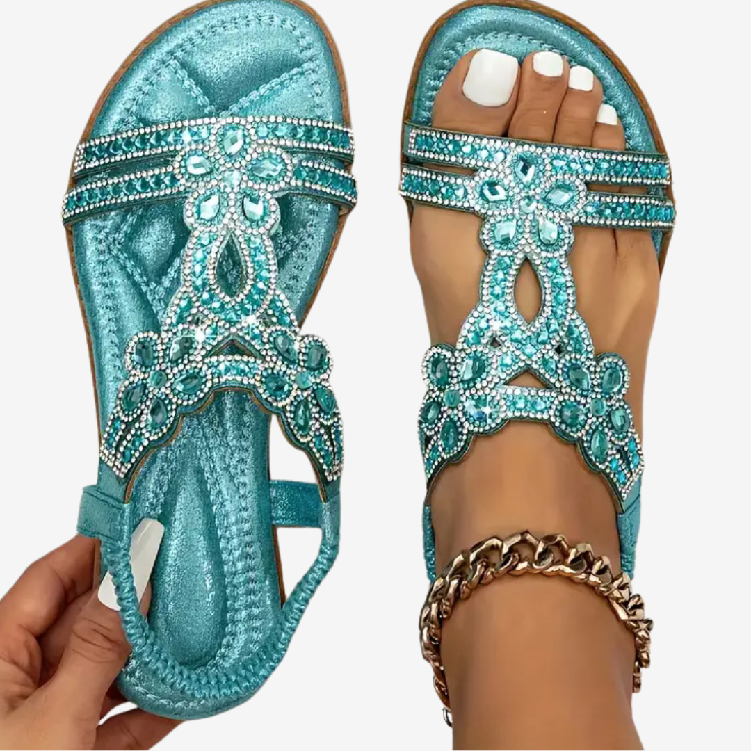 Ambreline™ allie élégance estivale et confort absolu. Ces superbes sandales bohèmes sont ornées de pierres précieuses scintillantes et conçues pour accompagner chacun de vos pas grâce à un soin orthopédique délicat. Que vous partiez en balade en bord de mer, que vous alliez à un festival ou que vous souhaitiez simplement rayonner en faisant vos courses, Ambreline™ vous offre l'éclat et le maintien que vous méritez.